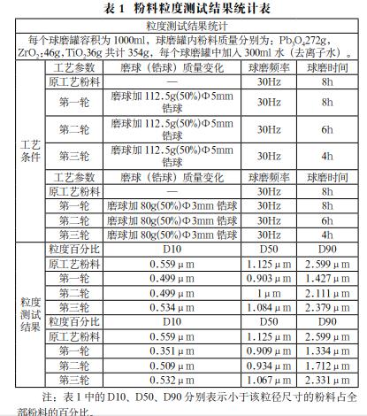 各種原料經(jīng)過粉料均勻磨細后,新的粉料粒徑小于舊的原料粒徑。在后續(xù)的燒結(jié)工藝中,粒徑較細的粉料容易燒結(jié)成晶向致密的塊體,可燒成的溫度范圍也大,燒成陶瓷后單位體積密度會理想。d33、電容、損耗、介電常數(shù)等壓電陶瓷性能測試結(jié)果會加穩(wěn)定。